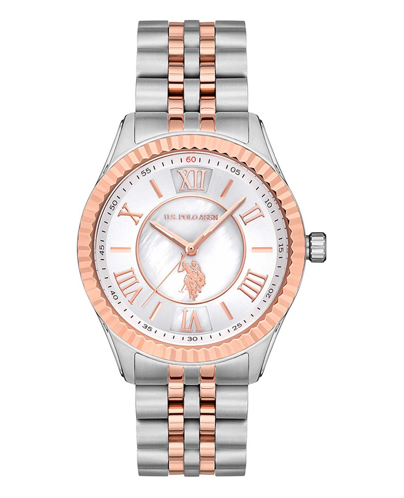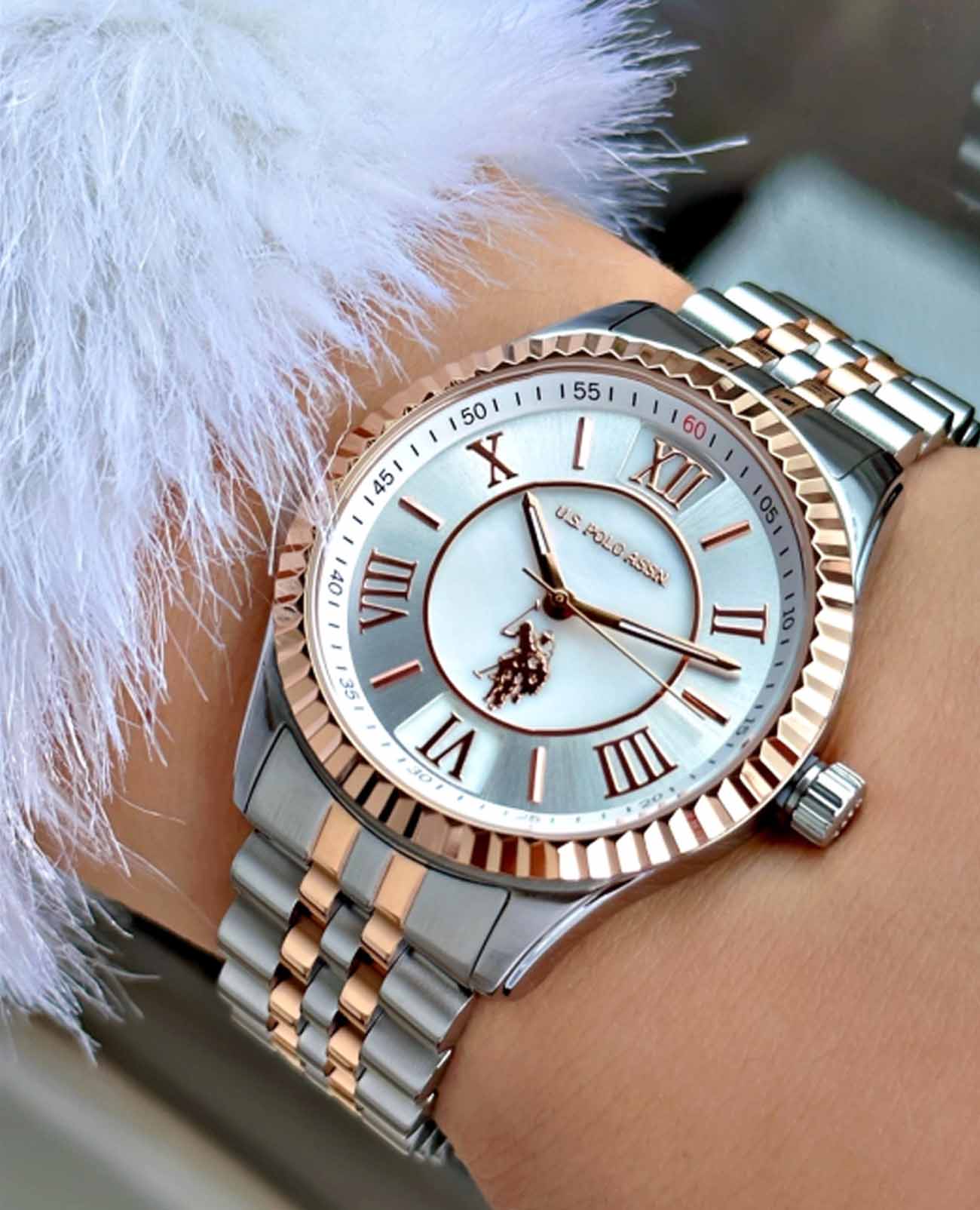 Женские часы U.S. Polo Assn Stile USPA2028-02, кварцевый механизм с высокой точностью. Минеральное стеклоМинеральное стеклоМинеральное стекло представляет собой искусственно выращенный минерал кварца. Такое стекло отличается особой устойчивостью к повреждениям и царапинам. Уступает по некоторым качествам сапфировому стеклу. устойчивое к появлению царапин, обладающее высокой прозрачностью. Корпус часов изготовлен из нержавеющей стали. БезельБезельВнешний ободок, закрепляющий стекло. В спортивных часах так называется поворотное кольцо с делениями на циферблате, выполняет роль таймера – замеряет отрезки времени на шкале. Неподвижный безель – элемент декора. Однонаправленно вращающийся безель на дайверских часах позволяет фиксировать моменты погружения и выныривания на поверхность. с IP-покрытиемIP-покрытиеМетод ионного напыления. Демонстрирует повышенную устойчивость к истиранию, окислению и химическим веществам. Под воздействием высокого давления и температуры около 1500°C молекулы металла надёжно соединяются с частицами корпуса часов.. Стрелки с люминесцентным покрытиемЛюминесцентное покрытиеПозволяет считывать показания времени в темноте. Производители наносят на стрелки, часовые индексы, безель или поверхность циферблата светонакопительный состав, дающий холодное свечение.. Класс водозащиты: 50 метров, позволит защитить корпус от случайных брызг или капель дождя. Стальной браслет с частичным  IP-покрытиемIP-покрытиеМетод ионного напыления. Демонстрирует повышенную устойчивость к истиранию, окислению и химическим веществам. Под воздействием высокого давления и температуры около 1500°C молекулы металла надёжно соединяются с частицами корпуса часов. на раскладной застёжкеРаскладная застёжкаТакой тип застёжки используется только на браслетах из металла. Она никогда не раскрывается полностью, происходит разделение на 2 и более частей. Раскладывающая застёжка снизит вероятность потери часов к минимуму..