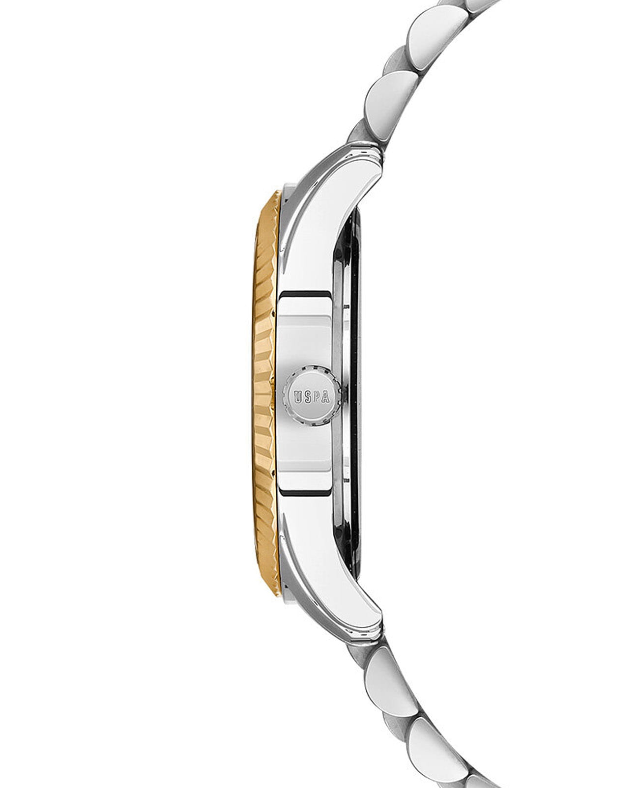 Женские часы U.S. Polo Assn Stile USPA2028-08, кварцевый механизм с высокой точностью. Минеральное стеклоМинеральное стеклоМинеральное стекло представляет собой искусственно выращенный минерал кварца. Такое стекло отличается особой устойчивостью к повреждениям и царапинам. Уступает по некоторым качествам сапфировому стеклу. устойчивое к появлению царапин, обладающее высокой прозрачностью. Корпус часов изготовлен из нержавеющей стали. БезельБезельВнешний ободок, закрепляющий стекло. В спортивных часах так называется поворотное кольцо с делениями на циферблате, выполняет роль таймера – замеряет отрезки времени на шкале. Неподвижный безель – элемент декора. Однонаправленно вращающийся безель на дайверских часах позволяет фиксировать моменты погружения и выныривания на поверхность. с IP-покрытиемIP-покрытиеМетод ионного напыления. Демонстрирует повышенную устойчивость к истиранию, окислению и химическим веществам. Под воздействием высокого давления и температуры около 1500°C молекулы металла надёжно соединяются с частицами корпуса часов.. Стрелки с люминесцентным покрытиемЛюминесцентное покрытиеПозволяет считывать показания времени в темноте. Производители наносят на стрелки, часовые индексы, безель или поверхность циферблата светонакопительный состав, дающий холодное свечение.. Класс водозащиты: 50 метров, позволит защитить корпус от случайных брызг или капель дождя. Стальной браслет с частичным IP-покрытиемIP-покрытиеМетод ионного напыления. Демонстрирует повышенную устойчивость к истиранию, окислению и химическим веществам. Под воздействием высокого давления и температуры около 1500°C молекулы металла надёжно соединяются с частицами корпуса часов. на раскладной застёжкеРаскладная застёжкаТакой тип застёжки используется только на браслетах из металла. Она никогда не раскрывается полностью, происходит разделение на 2 и более частей. Раскладывающая застёжка снизит вероятность потери часов к минимуму..