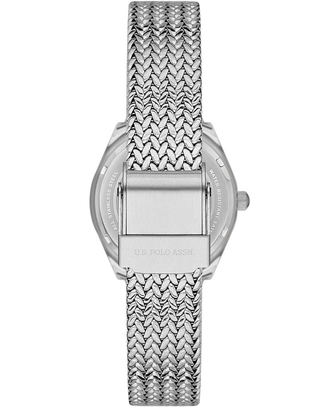 Женские часы U.S. Polo Assn. Stile USPA2062-01 кварцевый механизм с высокой точностью. Минеральное стеклоМинеральное стеклоМинеральное стекло представляет собой искусственно выращенный минерал кварца. Такое стекло отличается особой устойчивостью к повреждениям и царапинам. Уступает по некоторым качествам сапфировому стеклу. устойчивое к появлению царапин, обладающее высокой прозрачностью. Корпус изготовлен из нержавеющей стали. Класс водозащиты: 50 метров, позволит защитить корпус от случайных брызг или капель дождя. Стальной плетеный браслет на раскладном замкеРаскладной замокДанный вариант застежки используется только на часах с металлическим браслетом. Отличительная особенность такого крепления в том, что длина браслета становится универсальной и вы можете самостоятельно отрегулировать нужный вам размер – застежка просто двигается по браслету часов..