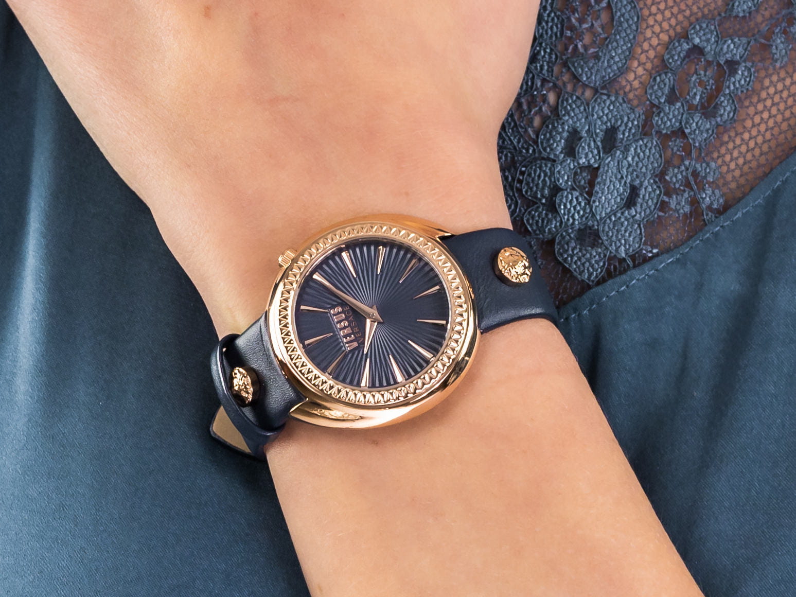 Женские часы в стальном корпусе украшенным текстурным узором Versus Versace VSPHF0520, кварцевый механизм с высокой точностью. Класс водозащиты: 30 метров, позволит защитить корпус от случайных брызг или капель дождя. Корпус часов изготовлен из стали, позолоченного цвета.