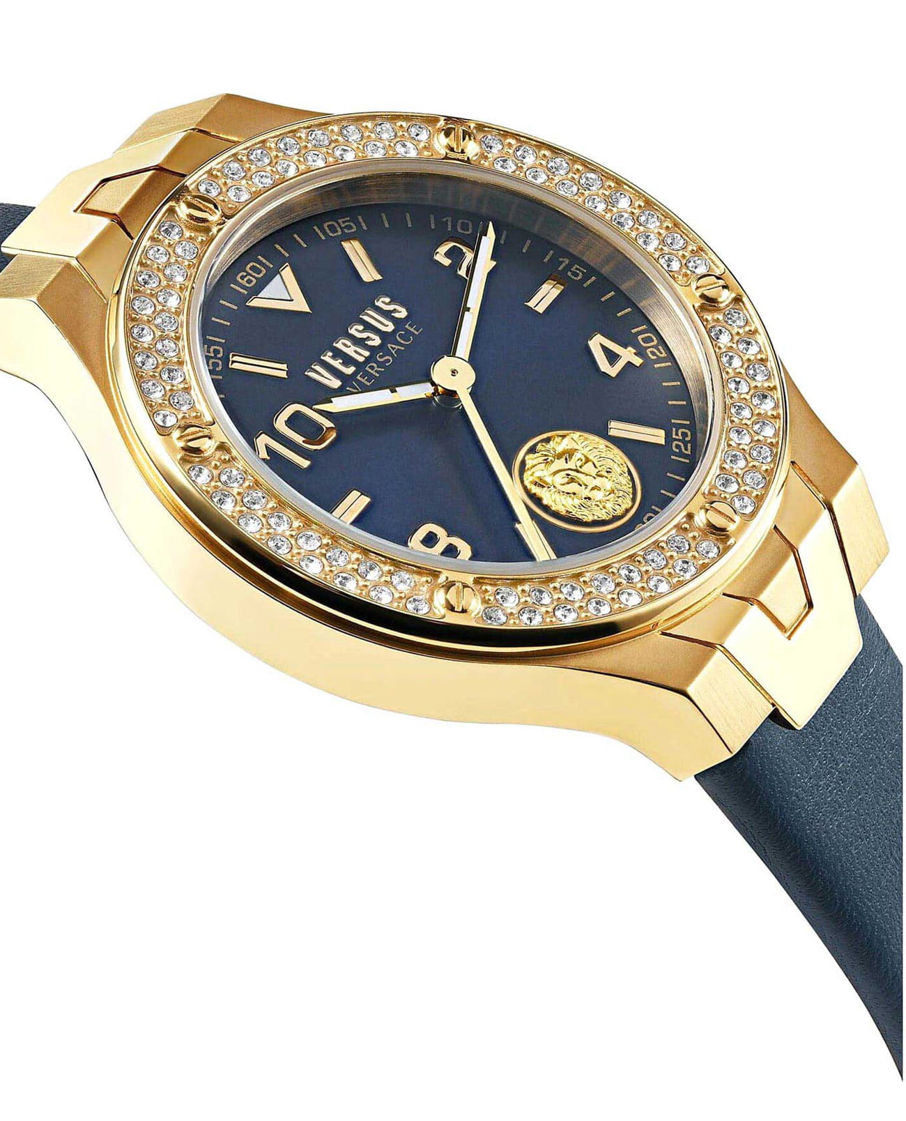 Бесподобные женственные часы окутаю вас ювелирной роскошью, доведя образ до совершенства. Стильные часы Vittoria с круглым стальным корпусом, дополненным планками V-образной формы. Безель инкрустирован кристаллами Сваровски. Циферблат украшен 3d лого в форме головы льва. Часовые метки в виде арабских цифр и штрихов. Кожаный ремешок с классической застежкой.