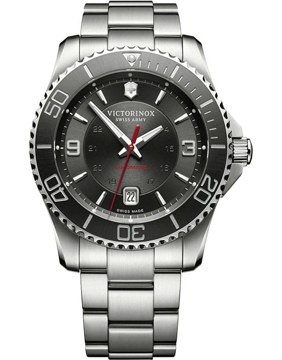 Мужские механические часы с сапфировым стеклом Victorinox 241705, механический механизм (автоматический калибр) с высокой точностью. Класс водозащиты: 100 метров, позволит плавать, нырять и заниматься другими водными видами спорта. Корпус часов изготовлен из стали, цвета.