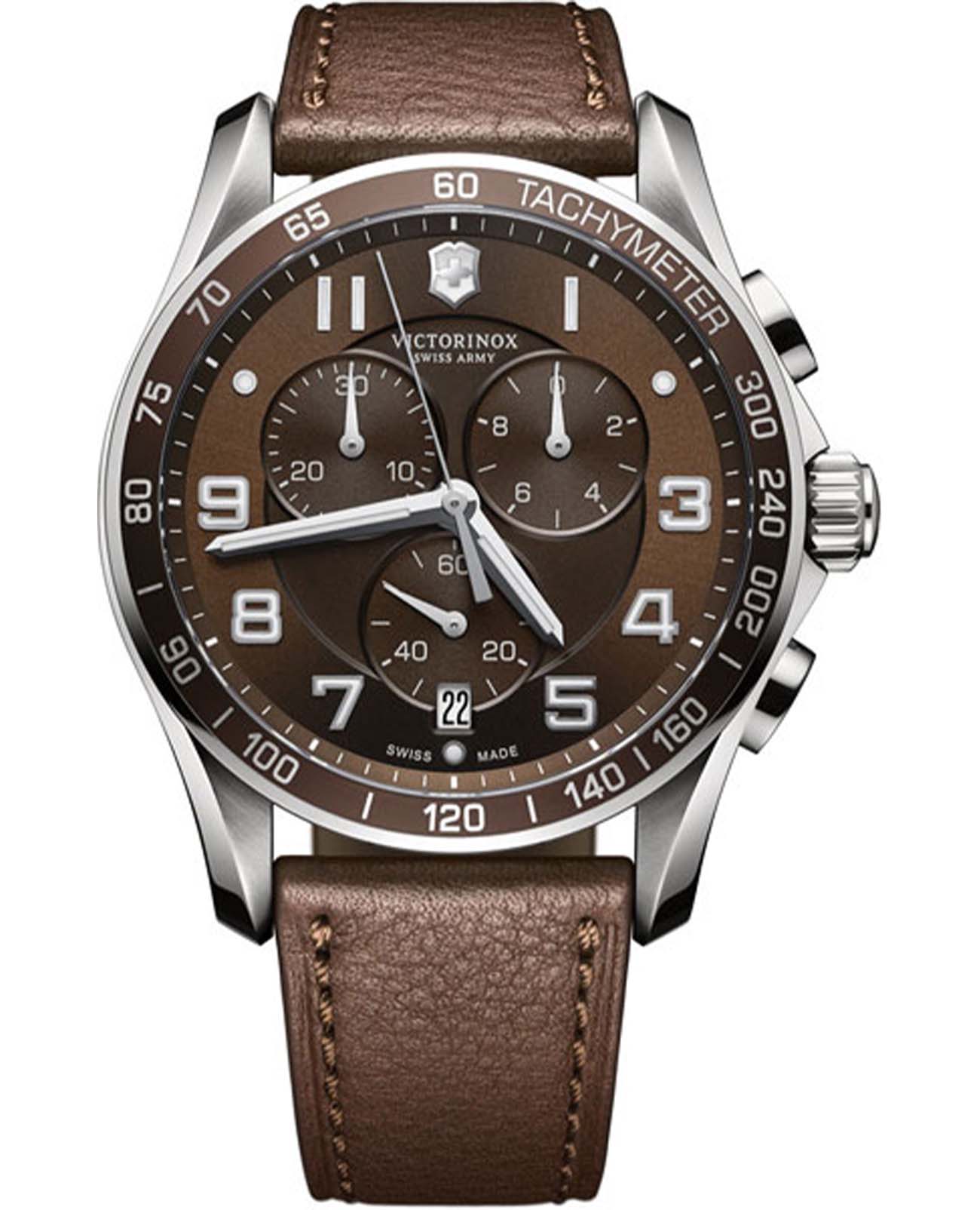 Мужские швейцарские часы-хронографХронографФункция позволяет измерять отрезки времени с особой точностью: часы, минуты, секунды. Верным признаком хронографа является наличие на циферблате 3 дополнительных окошек-счётчиков. Victorinox Chrono Classic XLS 241653 с надёжным кварцевым механизмом. Сапфировое стеклоСапфировое стеклоПрочный и надёжный материал из кристалла сапфира синтетического происхождения, характеризующийся особой твёрдостью и устойчивостью к царапинам и повреждениям. с трёхслойным антибликовым покрытием. Корпус часов выполнен из нержавеющей стали с PVD-покрытиемPVDУльтратонкое покрытие наносится в технике вакуумного напыления, сочетает в себе нитрид титана особой прочности со слоем золота или оксида хрома. Несёт в себе декоративную или защитную функцию..БезельБезельВнешний ободок, закрепляющий стекло. В спортивных часах так называется поворотное кольцо с делениями на циферблате, выполняет роль таймера – замеряет отрезки времени на шкале. Неподвижный безель – элемент декора. Однонаправленно вращающийся безель на дайверских часах позволяет фиксировать моменты погружения и выныривания на поверхность. с метками тахиметраТахиметрРазмеченная шкала, располагается на ободке или безеле часов. Тахиметр позволяет рассчитать скорость на определённом участке пути, расстояние измеряется в километрах или милях.. Окошко даты находится в положении 6 часов, стрелки и метки с люминесцентным покрытиемЛюминесцентное покрытиеПозволяет считывать показания времени в темноте. Производители наносят на стрелки, часовые индексы, безель или поверхность циферблата светонакопительный состав, дающий холодное свечение.. Класс водозащиты: 100 метров, позволит плавать, нырять и заниматься другими водными видами спорта. Кожаный ремешок на стандартной застёжке.