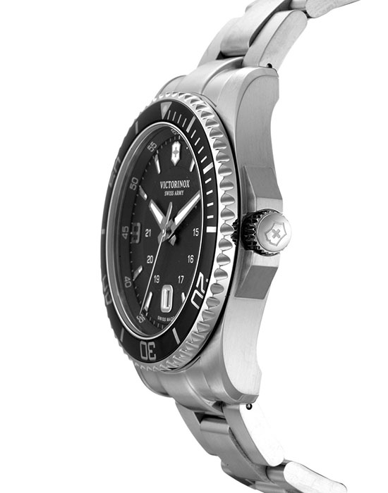 Мужские швейцарские часы с сапфировым стеклом Victorinox 241697, кварцевый механизм с высокой точностью. Сапфировое стекло устойчивое к появлению царапин, обладающее высокой прозрачностью. Класс водозащиты: 100 метров, позволит плавать, нырять и заниматься другими водными видами спорта. Корпус часов изготовлен из стали, цвета.