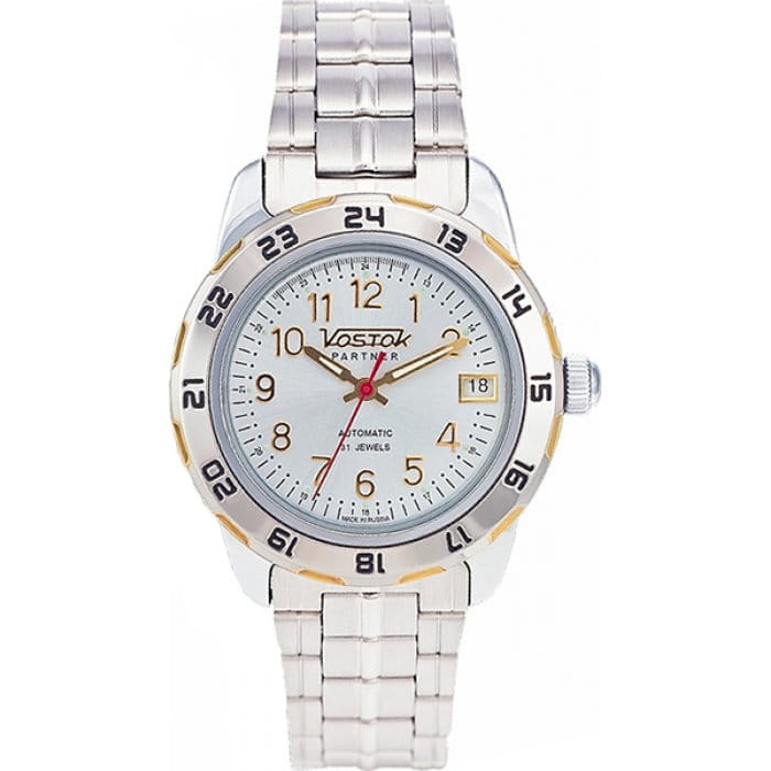 Элегантные часы, идеально подходящие для повседневного образа, будут актуальны в любой обстановке. Партнер. В механизме 31 камень, частота 19800 полуколебаний в час. Запас хода 31 час. Противоударное устройство оси баланса. 12-ти и 24-х часовой формат времени. Вращающийся безель. Заводная головка с защитой. Браслет с раскладывающейся застежкой. Застежка с системой блокировки.