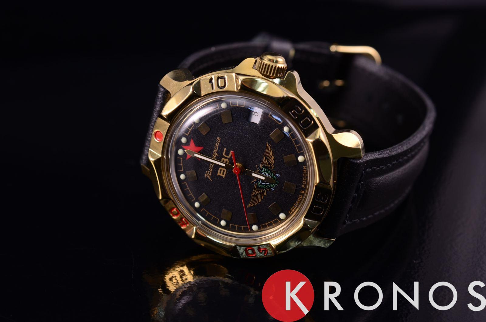 Российские механические часы. Корпус из высокопрочной стали с антикоррозийными свойствами. Ремешок из натуральной кожи черного цвета. Черный циферблат с символикой ВВС. Водонепроницаемость часов составляет 3 ATM. Минеральное стекло, устойчивое к появлению царапин.