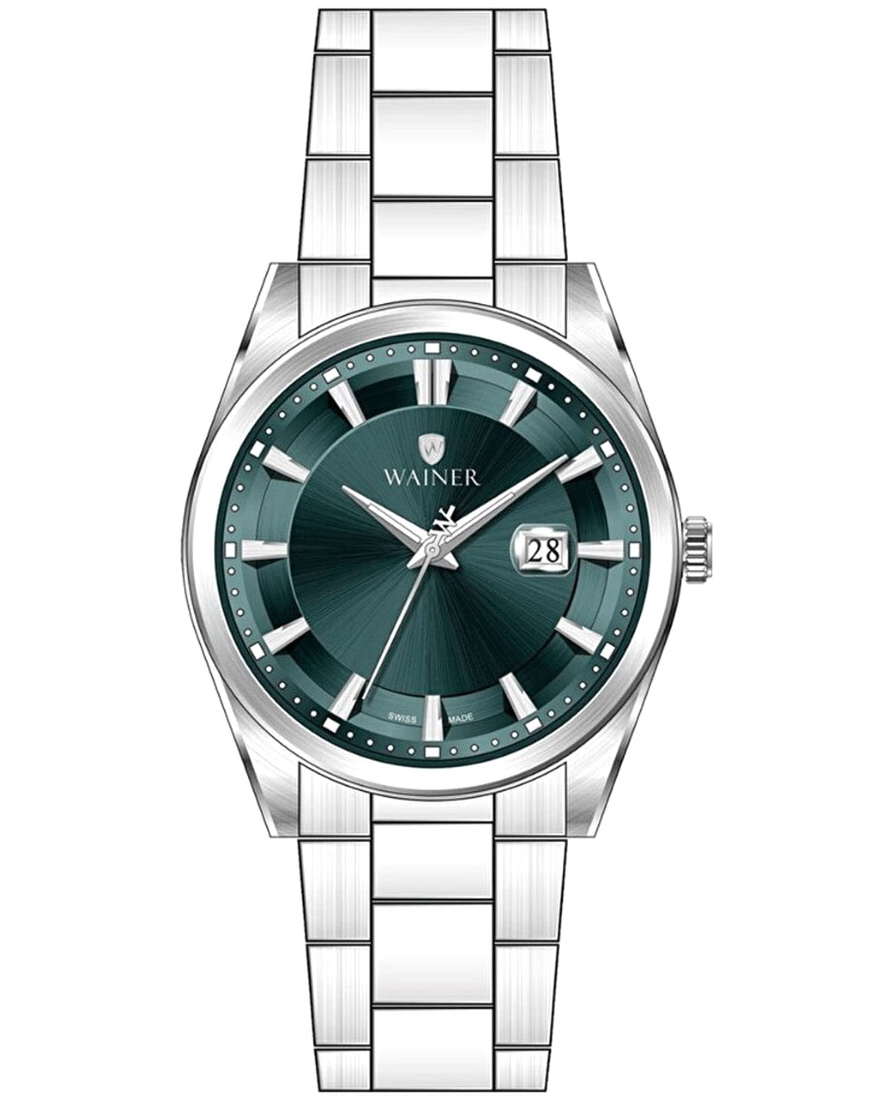 Мужские кварцевые часы WA.17200-E сочетают в себе элегантный дизайн и высокое качество исполнения. Корпус выполнен из нержавеющей стали серебристого цвета диаметром 41 мм, обеспечивает прочность и долговечность. Циферблат с метками в виде штрихов выполнен по технологии Sunray (солнечные лучи) и украшен фирменным логотипом Wainer. Сапфировое стеклоСапфировое стеклоПрочный и надёжный материал из кристалла сапфира синтетического происхождения, характеризующийся особой твёрдостью и устойчивостью к царапинам и повреждениям. защищает дисплей от царапин и механических повреждений. Окошко даты находится в положении 3 часа. Стрелки с люминесцентным покрытиемЛюминесцентное покрытиеПозволяет считывать показания времени в темноте. Производители наносят на стрелки, часовые индексы, безель или поверхность циферблата светонакопительный состав, дающий холодное свечение., улучшая читаемость в условиях недостаточного освещения. Стальной браслет на застёжке-бабочкеЗастёжка "бабочка"Такой вид застёжки дополняется предохранителями, помогающими избежать случайного раскрытия браслета. Обладают изящным исполнением. обеспечивает комфортное ношение на запястье. Водонепроницаемость до 50 метров позволит защитить корпус от случайных брызг или капель дождя. Wainer — это стильный и надежный аксессуар для тех, кто ценит швейцарское качество и современные технологии.