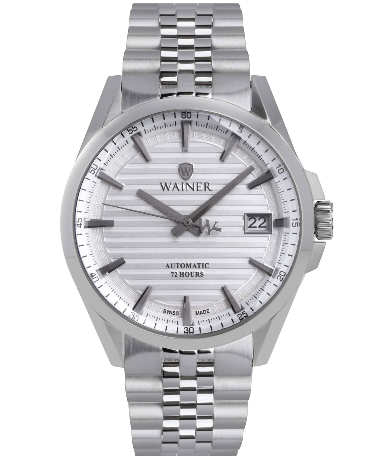 Мужские механические часы с автоподзаводом WA.25401-C сочетают в себе элегантный дизайн и высокое качество исполнения. Корпус выполнен из нержавеющей стали серебристого цвета диаметром 41 мм, обеспечивает прочность и долговечность. Циферблат с метками в виде штрихов украшен фирменным логотипом Wainer. Секундная стрелка на конце декорирована логотипом бренда - буквой W. Сапфировое стеклоСапфировое стеклоПрочный и надёжный материал из кристалла сапфира синтетического происхождения, характеризующийся особой твёрдостью и устойчивостью к царапинам и повреждениям. защищает дисплей от царапин и механических повреждений. Окошко даты находится в положении 3 часа. Стальной браслет на застёжке-бабочкеЗастёжка "бабочка"Такой вид застёжки дополняется предохранителями, помогающими избежать случайного раскрытия браслета. Обладают изящным исполнением. обеспечивает комфортное ношение на запястье. Водонепроницаемость до 100 метров позволит плавать, нырять и заниматься другими водными видами спорта. Wainer — это стильный и надежный аксессуар для тех, кто ценит швейцарское качество и современные технологии.