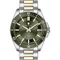Модель Wainer WA.25540-E сочетает элегантность, швейцарское качество и современный дизайн. Корпус выполнен из нержавеющей стали 316L и БезельБезельВнешний ободок, закрепляющий стекло. В спортивных часах так называется поворотное кольцо с делениями на циферблате, выполняет роль таймера – замеряет отрезки времени на шкале. Неподвижный безель – элемент декора. Однонаправленно вращающийся безель на дайверских часах позволяет фиксировать моменты погружения и выныривания на поверхность. с PVD-покрытиемPVDУльтратонкое покрытие наносится в технике вакуумного напыления, сочетает в себе нитрид титана особой прочности со слоем золота или оксида хрома. Несёт в себе декоративную или защитную функцию., подчеркивающим роскошный стиль часов. Циферблат оформлен в сдержанном классическом стиле, а сапфировое стеклоСапфировое стеклоПрочный и надёжный материал из кристалла сапфира синтетического происхождения, характеризующийся особой твёрдостью и устойчивостью к царапинам и повреждениям. защищает его от царапин и механических повреждений, обеспечивая долговечность. Часы оснащены автоматическим механизмом, обеспечивающим надежность и точность хода. Браслет из нержавеющей стали с вставками золотого PVD-покрытияPVDУльтратонкое покрытие наносится в технике вакуумного напыления, сочетает в себе нитрид титана особой прочности со слоем золота или оксида хрома. Несёт в себе декоративную или защитную функцию. и раскладной застёжкойРаскладная застёжкаТакой тип застёжки используется только на браслетах из металла. Она никогда не раскрывается полностью, происходит разделение на 2 и более частей. Раскладывающая застёжка снизит вероятность потери часов к минимуму. гарантирует комфорт и надежную фиксацию. Водонепроницаемость до 100 метров, позволит плавать, нырять и заниматься другими водными видами спорта. Wainer WA.25540-E — стильный аксессуар для мужчин, ценящих сочетание классики, надежности и утонченного швейцарского качества.