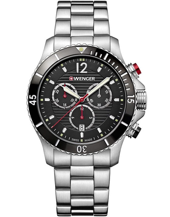 Мужские швейцарские часы с хронографом Wenger 01.0643.109, кварцевый механизм с высокой точностью. Класс водозащиты: 200 метров, позволит плавать, нырять и заниматься другими водными видами спорта. Корпус часов изготовлен из стали, цвета.