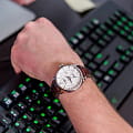 Часы Zeppelin 8442-5 — это изделие, которое идеально сидит на мужском запястье. Яркий циферблат, защищенный минеральным стекломМинеральное стеклоМинеральное стекло представляет собой искусственно выращенный минерал кварца. Такое стекло отличается особой устойчивостью к повреждениям и царапинам. Уступает по некоторым качествам сапфировому стеклу., полностью покрыт люминесцентным покрытиемЛюминесцентное покрытиеПозволяет считывать показания времени в темноте. Производители наносят на стрелки, часовые индексы, безель или поверхность циферблата светонакопительный состав, дающий холодное свечение., которое светится в темноте. Корпус часов выполнен из нержавеющей стали, а коричневый ремешок - из кожи. Дополнительной функцией часов является отображение дня месяца в положении "3 часа" и указателя GMTGMTОтображение времени второго часового пояса.Такая функция особенно актуальна для путешественников и бизнесменов,которые общаются с людьми из разных стран,теперь вы всегда будете знать,какой час у вашего партнёра или близкого человека., который позволяет устанавливать и считывать показания второго часового пояса. Водонепроницаемость часов составляет 50 метров, что означает, что вы можете спокойно принимать душ, надев Zeppelin на запястье. Эти часы подойдут для повседневного ношения и станут ярким акцентом в вашем наряде.
